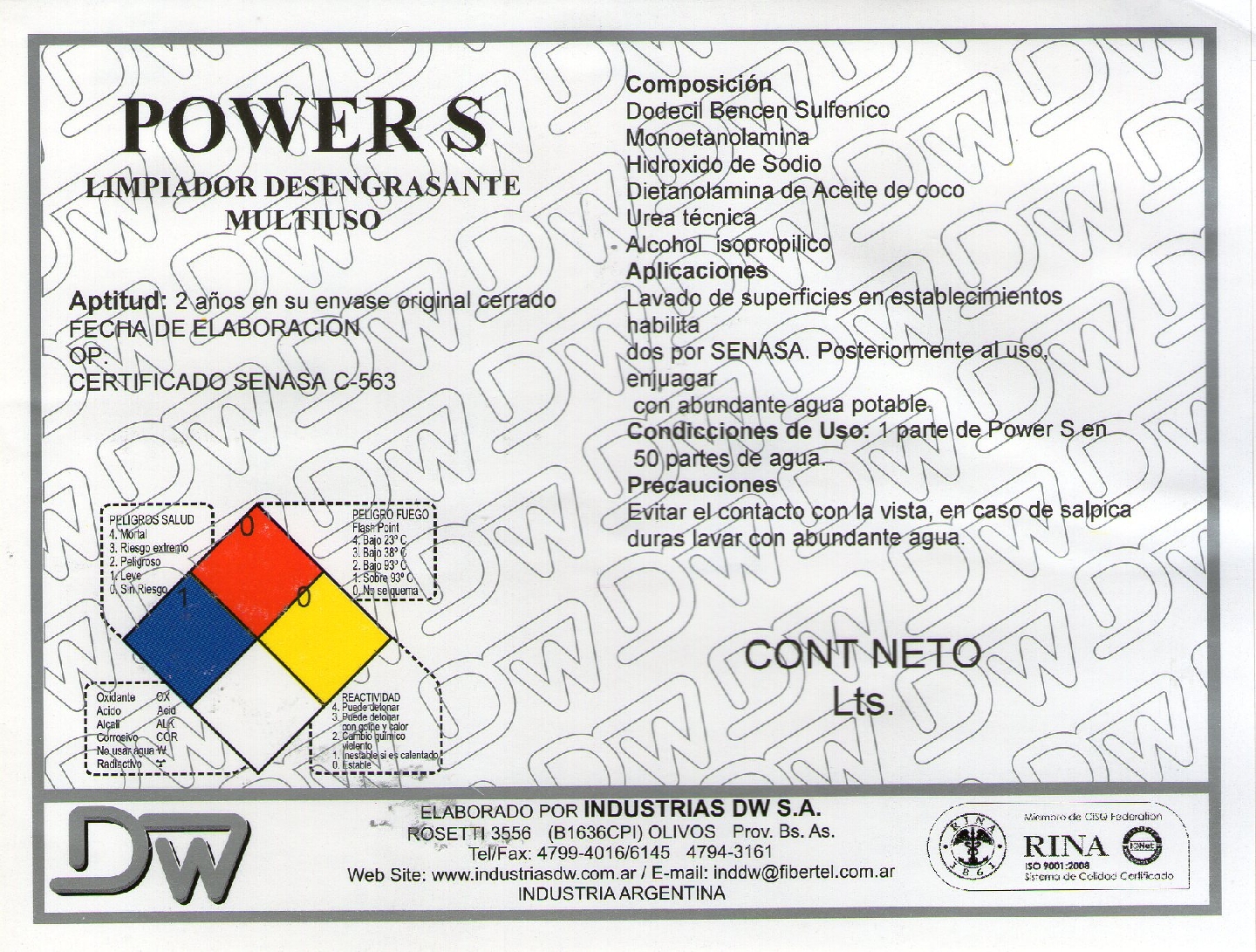 Soluble en agua. Acepta granders diluciones, además de ser un producto recomendado para ser utilizado en lavadoras-fregadoras de uso industrial.